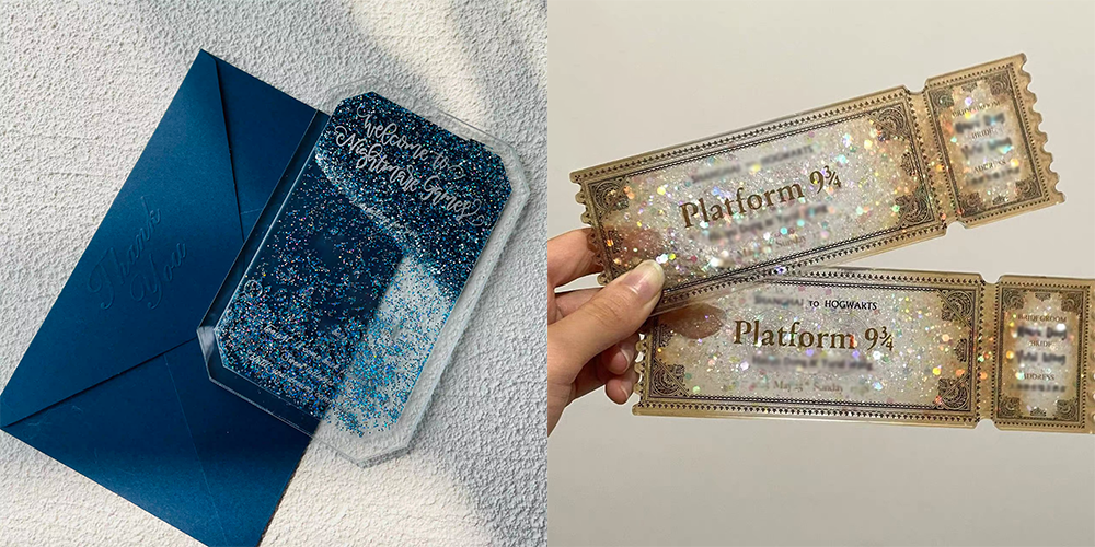 Pricing example: A Harry Potter-themed ticket-stub wedding invitation style starts at $25-30 per piece, depending on size, complexity, and quantity. Final quotes will be provided after your details.