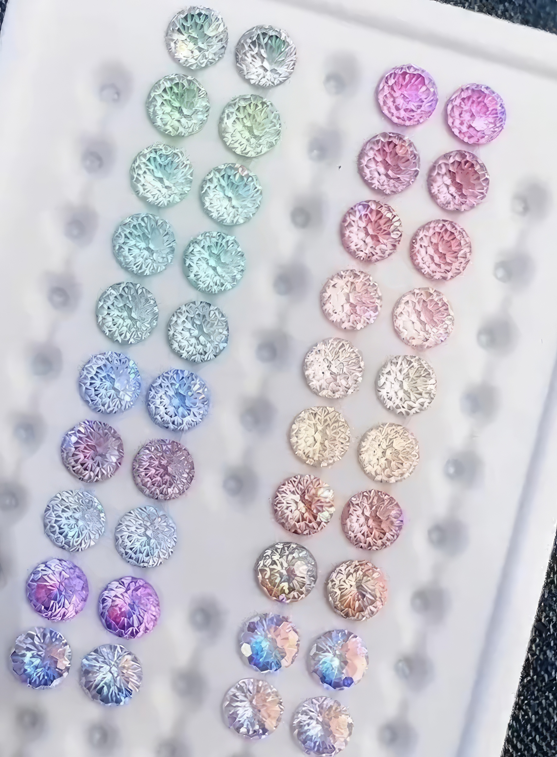Jellyfish Cut Zirconia is produced through a specialized polishing process that prioritizes curved surfaces instead of traditional facet planes.